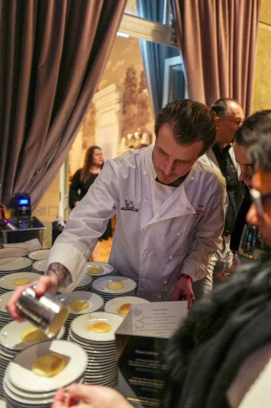 Første rett var signert Trondheims nye Michelinstjernerestaurant Speilsalen og kjøkkensjef og Bocuse d’Or-sølvvinner Christopher Davidsen.