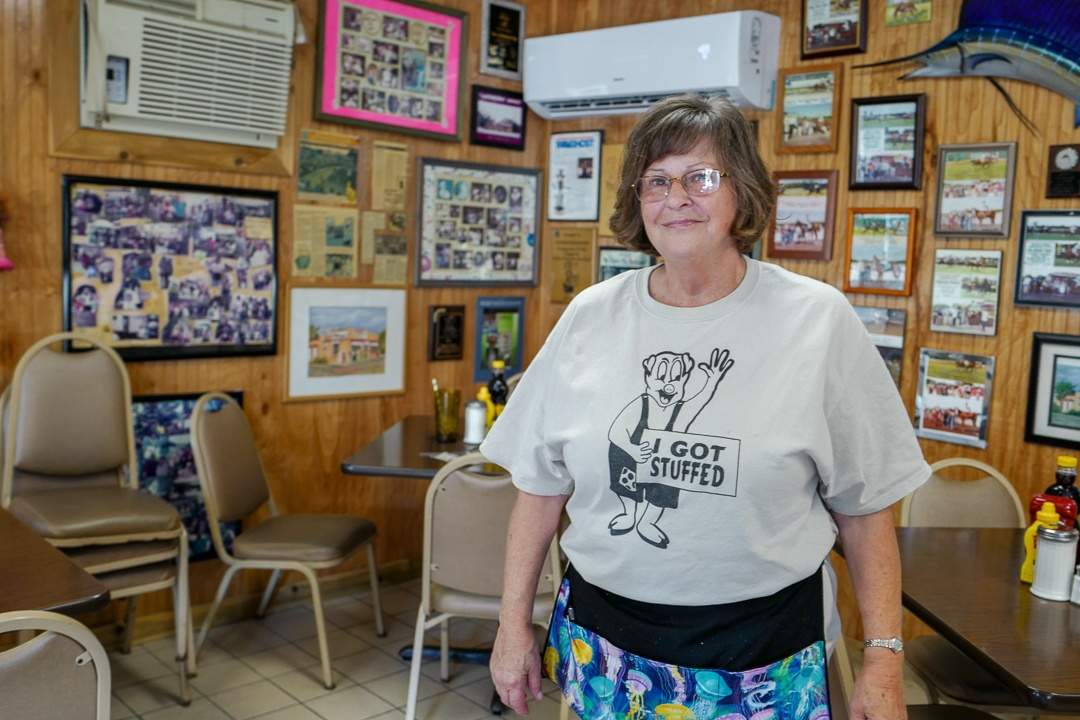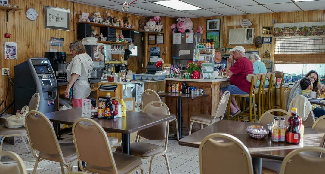 På nabobordet sitter seks unge menn med shorts, caps, sporty solbriller og t-skjorter med trykk. De forteller at det er tredje dagen denne uken at de spiser her. De vet hva de skal ha når «matmor» kommer for å ta opp bestilling. Det går i frokostsandwich med egg i midten, stekte egg, eggerøre, pølser og bacon.