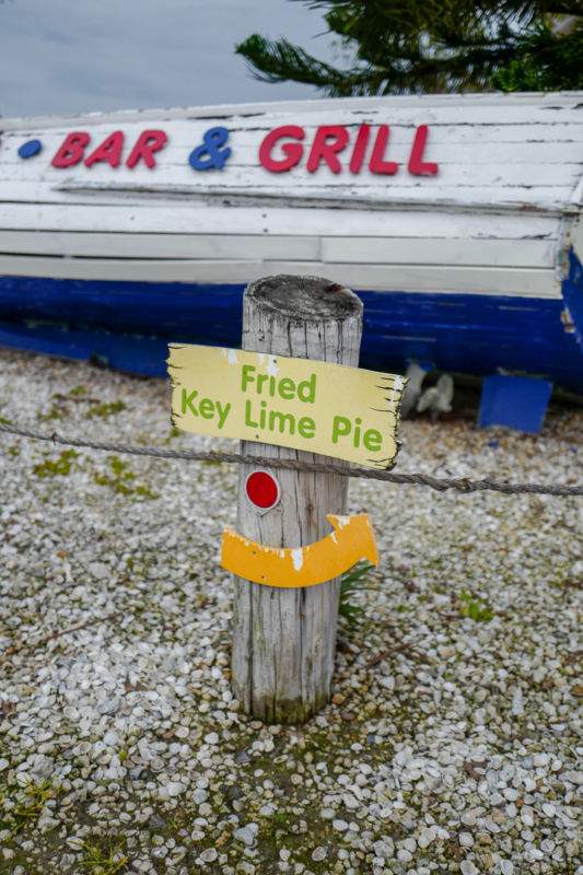 Key lime pie er store greier i Florida Keys. Den verdenskjente limeterten lages med saft fra key limes, en limesort med lite væske. Jeg kommer tilbake til denne i et senere innlegg. Men det jeg har tatt turen til Burdines Waterfront for er selvsagt for å smake denne spesielle terten som i dette tilfellet er fritert. Det er her den er oppfunnet, men det er et sted til i Marathon som serverer en fritert Key lime pie. Porky’s Bayside Restaurant and Marina, på den andre siden av hovedveien skryter også av sin friterte pai. Men den ser veldig fritert ut og det er ikke den jeg ønsker å smake denne gangen. Den får jeg heller komme tilbake for en annen gang.