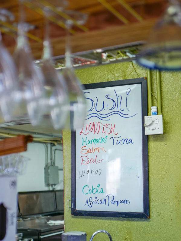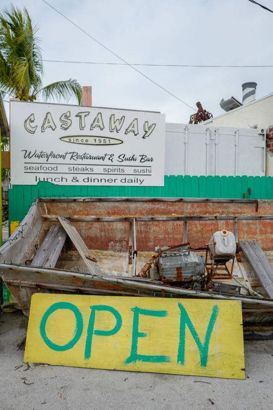 I 1999 seilte en mann ved navn John inn i kanalen og forelsket seg i stedet. Han kjøpte Castaway og satte fire S’er på menyen: Sjømat, Steaks, Sushi og Sprit. De har 52 forskjellige øl på fat. Man skulle tro at et sted som både har sushi og biff på menyen ikke er et sted å besøke, men her må du stole på meg. Dette var det stedet i hele Marathon der vi fikk den aller beste maten, og vi fikk fantastisk mat alle stedene vi spiste på.