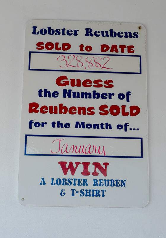 Når du bestiller mat oppgir du et navn. Vi er amatører og valgte selvsagt vårt eget navn. Det var tabbe. Alle rutinerte kunder på Keys Fisheries vet at man skal oppgi et navn som er relatert til havet. Så når bestillingen er klar for henting på kjøkkenet ropes det ene fiskenavnet opp etter det andre. «Dolphin, your food is ready». «Shark tooth, come get your food» … Og så var det «Helle». Typisk turist. Det kom en fransk Eric etter oss også som tydeligvis aldri hadde vært der før. For en gjeng med amatører vi er. Men mat fikk vi og det er det som teller. Fra en fristende meny er det nesten umulig å velge. Deres aller mest populære rett er «The Worlds Famous Lobster Ruben». En sandwich med hummerkjøtt, surkål, 1000-islanddressing og sveitserost.