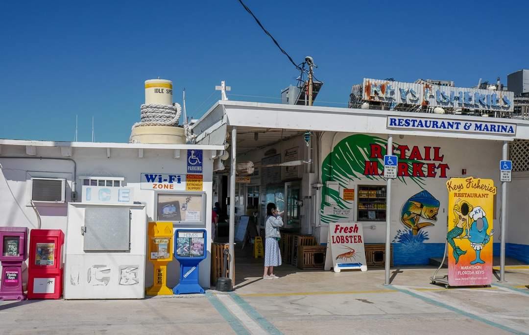 Inn fra hovedveien og forbi The Stuffed Pig ligger et annet sted som man ikke må gå glipp av. Keys Fisheries er marina, fiskebutikk og spisested. Det er enkelt og det er helt fantastisk.