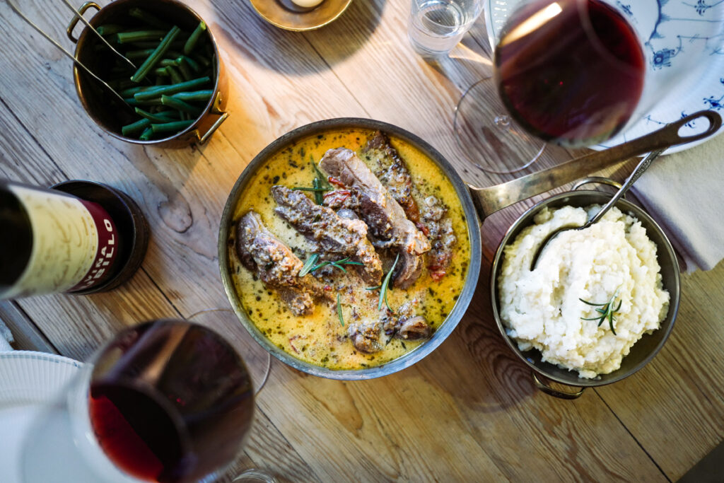 I påsken valgte jeg å bruke lam. Skiver av lammebog fra Heidal på Bondens Marked av beste kvalitet var kjøpt inn til påskemiddagen. Og da kan man jo gå forskjellige veier: Fårikål, gresk gryte, italiensk gryte… eller hva med Marry me lamb? Og det ble det sistnevnte. I tillegg til soltørkede tomater brukte jeg noen friske tomater, løk, hvitløk (noen oppskrifter har det), oregano og rosmarin i stedet for timian. Vi snakker tross alt om påskelammet og da passer hvitløk og rosmarin.
