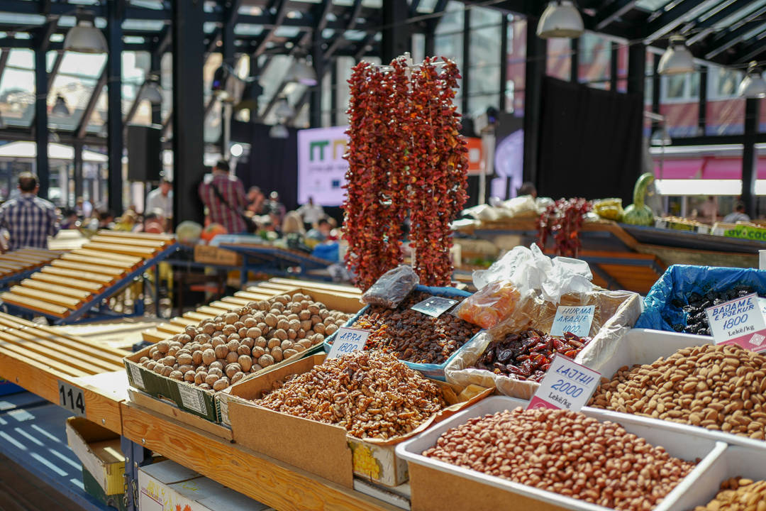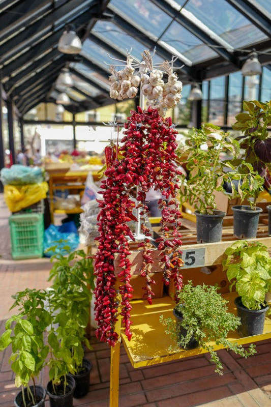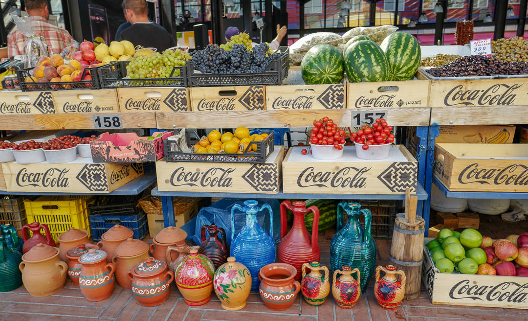 På markedet kan du kjøpe frukt og tobakk akkurat slik man kunne i gamle «Frukt og tobakk»-butikker hjemme. Ja, de selger ruller av tobakk på markedet og den produseres i Albania.