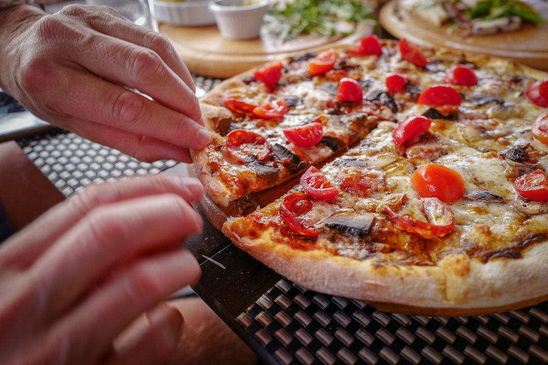 Tilbake til pizza’n. På Season spiste jeg også en fantastisk pizza med pølse, tomat, sopp og trøffelpaste. Vi var fem personer som spiste masse pizza, salat, spekemat og grillede pølser.