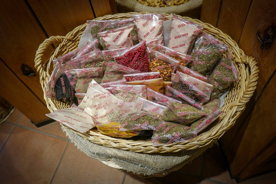 I butikkene rundt markedet finner du krydder, tørkede frukter, oster, fisk og kjøtt.