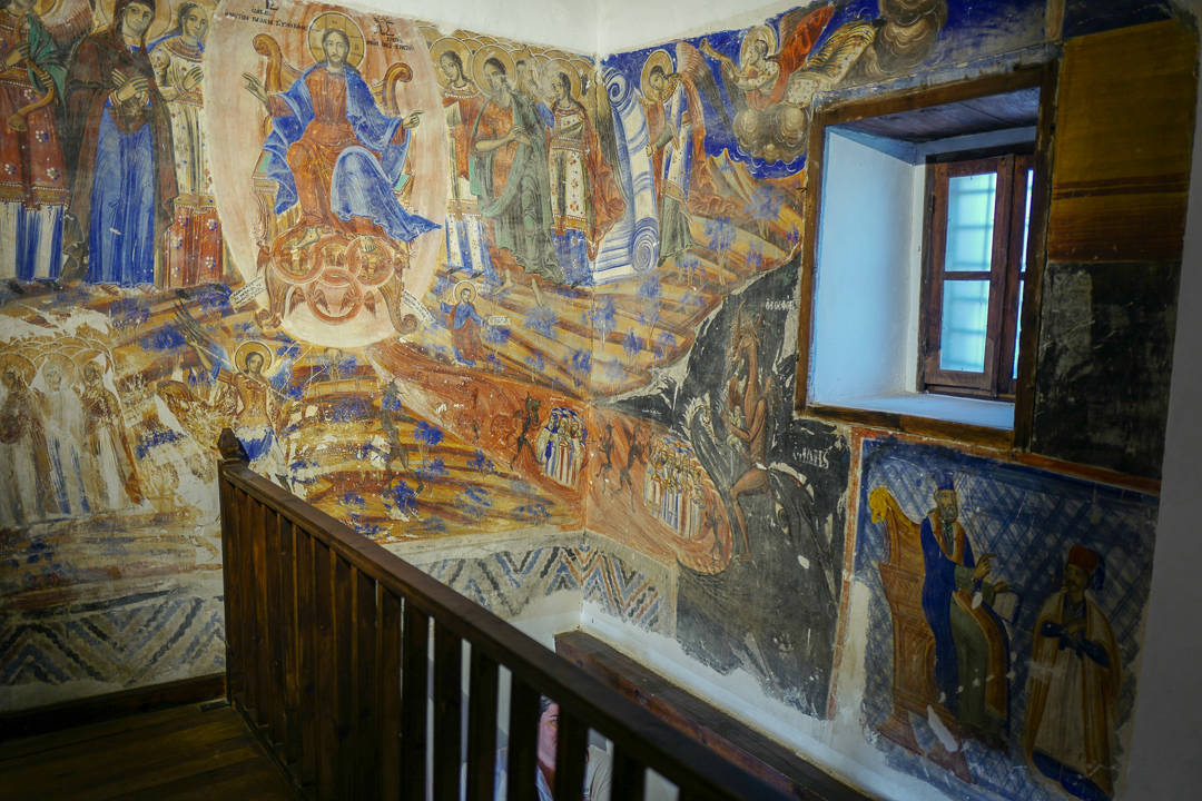 Ikontegnerne omtales som skrivere, ikke malere for de forteller en historie. Før i tiden kunne man ofte ikke lese og da måtte man være i stand til å fortelle historier via tegninger og malerier. Treverket som ble brukt til ikonene er valnøttre og tegningene har masse symbolikk. I samme kirke kan du også se noe så sjeldent som tegning av djevelen. Det forekommer vanligvis ikke innenfor et kirkerom.