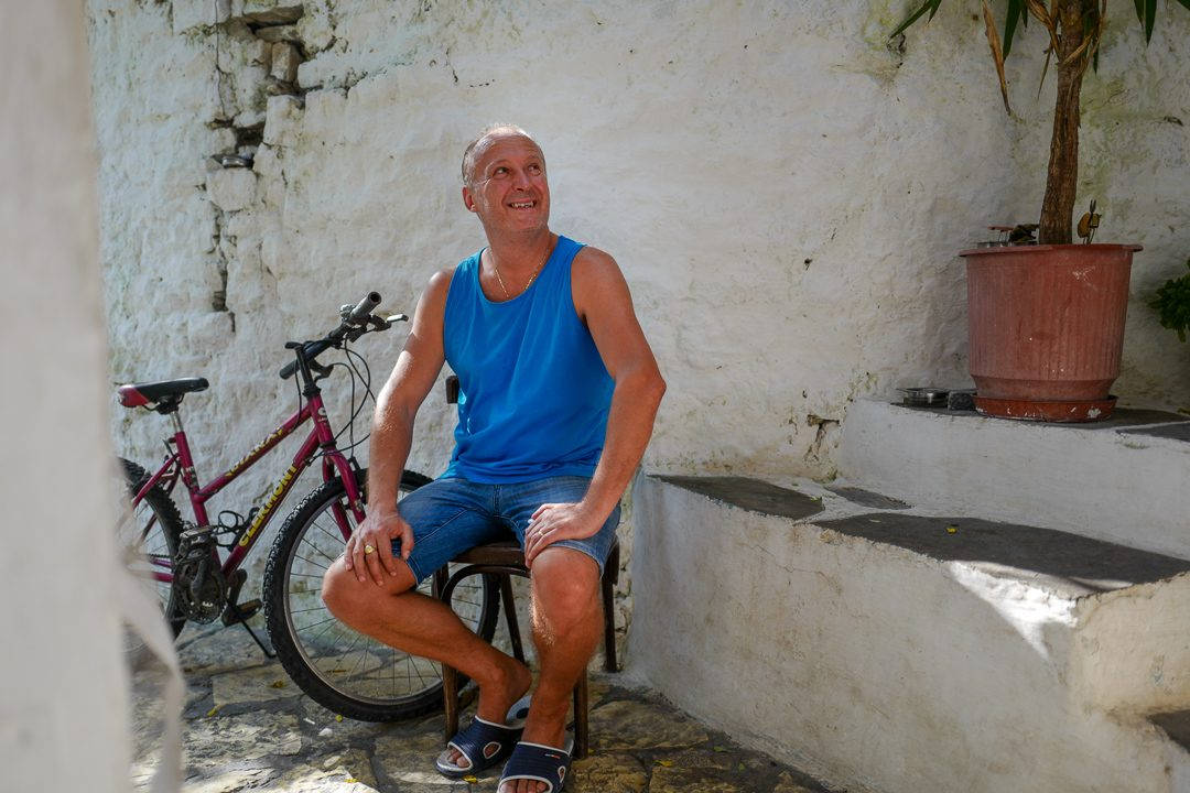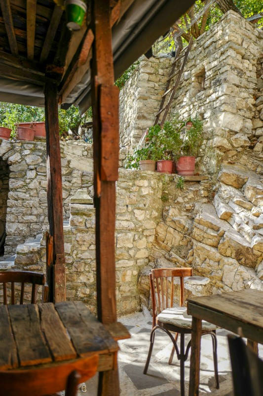 Når vi har spist er det tid for en liten raki. Babas raki. Lili skåler alltid med gjestene sine. Godt det ikke er mer enn noen få bord i den lille bakhagen.