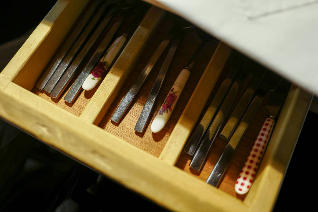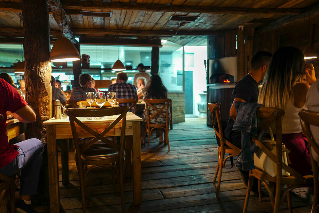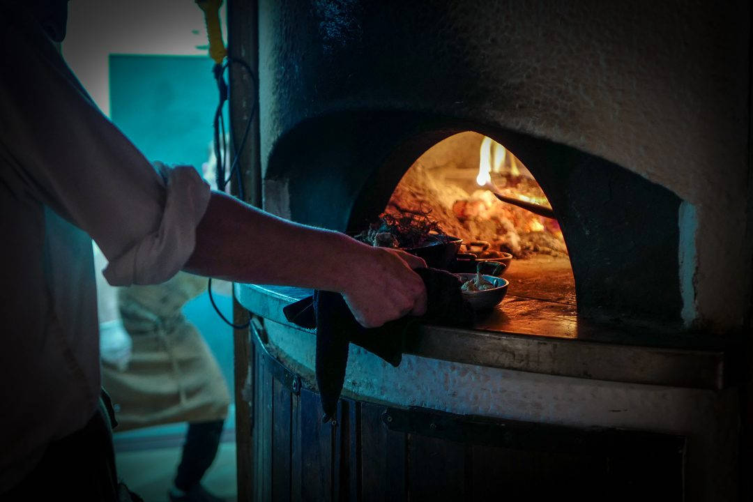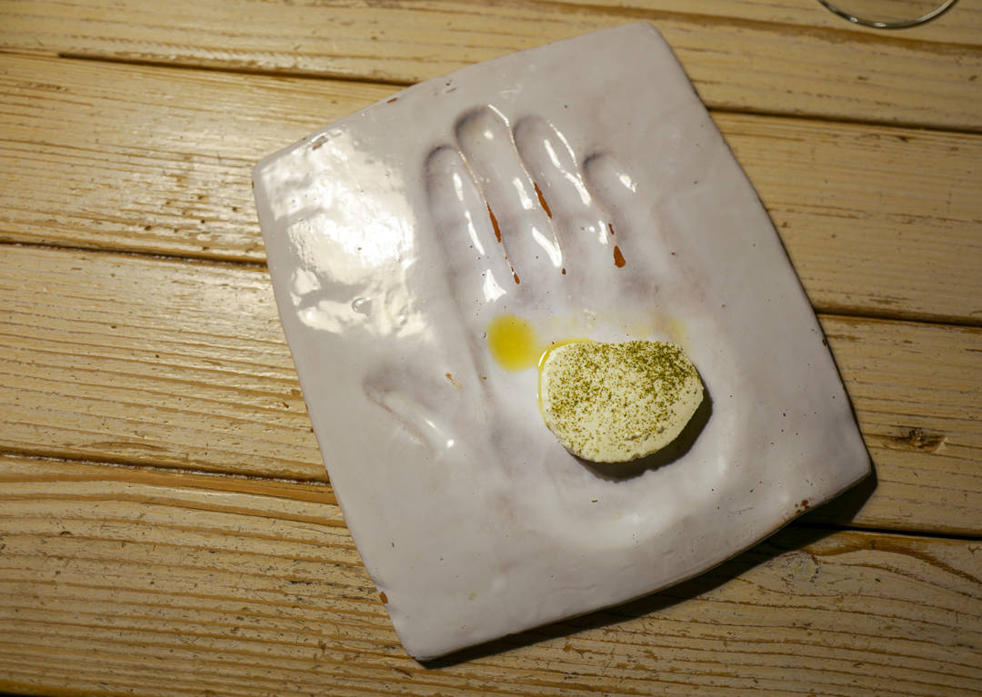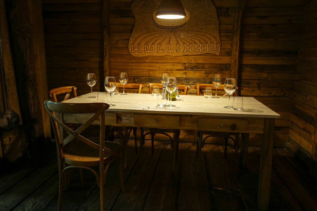Inspirasjonen til interiøret på Mullixhiu hentet han fra Fäviken. Det ser ut som en hytte innvending. Mørkt treverk og ild i peisen. Det er så koselig og maten er moderne albansk med tradisjonelle ingredienser.