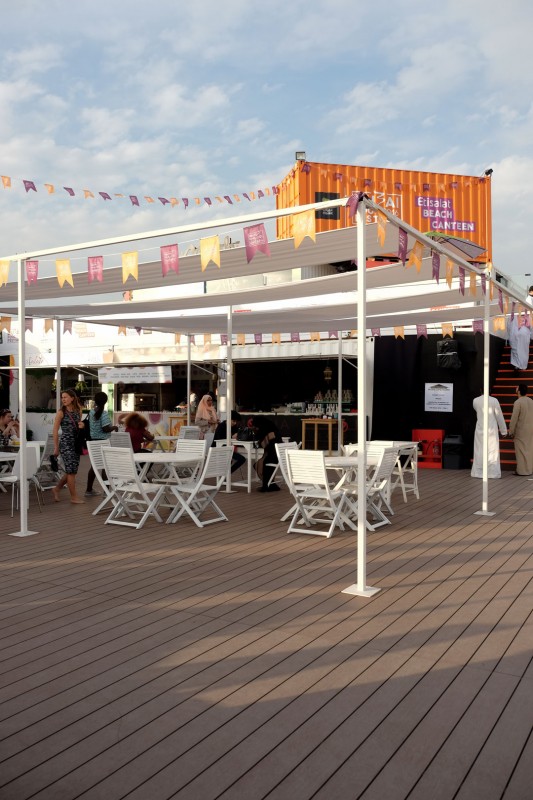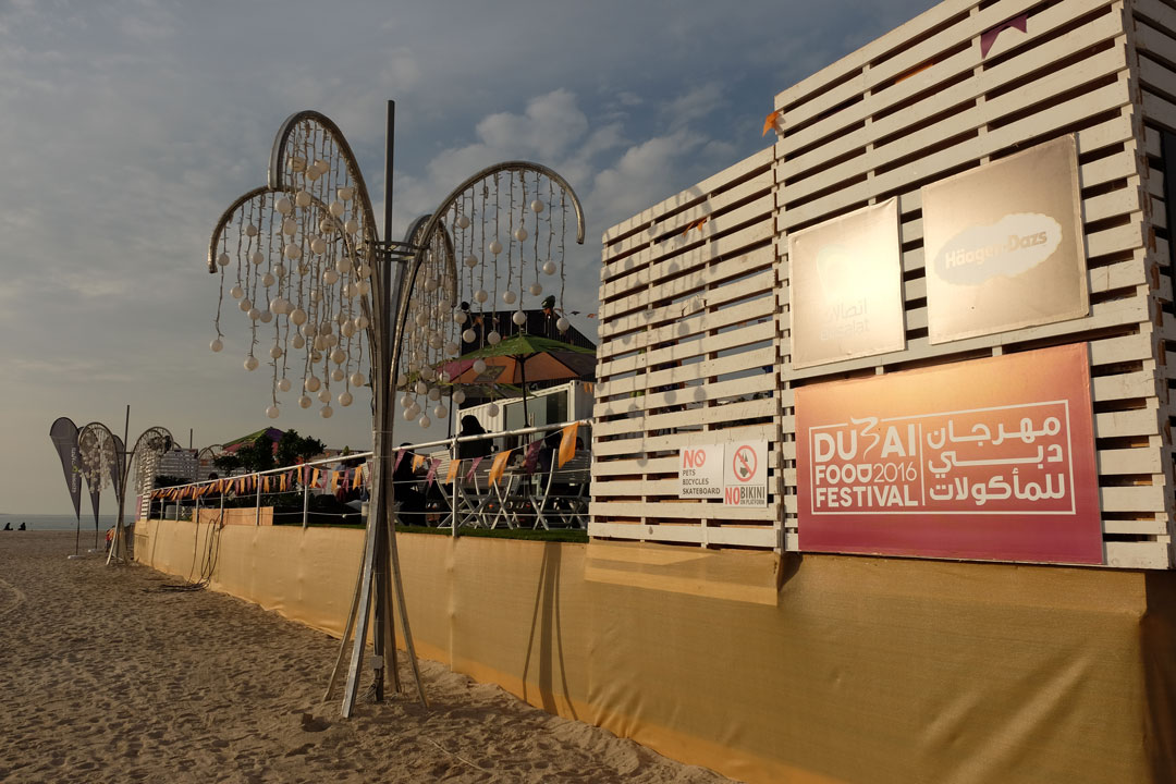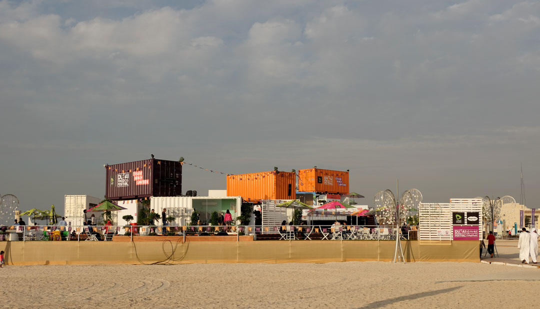 Matfestivalen i Dubai går for å være verdens største matfestival. Den foregår over flere uker. Dessverre er jeg der på slutten av festivalen. Uken før var det virkelig liv og røre her. Kjendiskokker og dommere fra australske MasterChef var her. Det var også veldig mange andre. Vel, bedre sent enn aldri. Festivalen foregår mange steder i byen med kokkeskoler for små og store, matarrangementer, smakinger og brakkebyen Etisalat Beach Canteen, som er en samling kule containere som er satt sammen til en liten by. Her finner du kaffeutsalg, matservering, små butikker og aktiviteter.