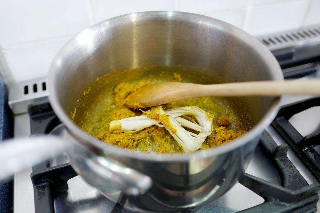 Kokken Nick har jobbet sammen med Rick Stein i 13 år. Han skal vise oss retten vi skal lage denne dagen: Indonesisk sjømatcurry.