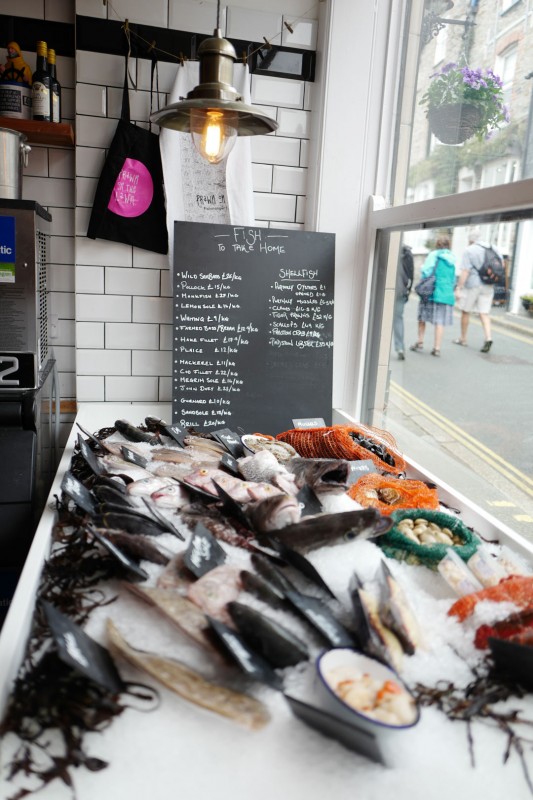 Padstow preges av Rick Stein. Ingen tvil om det. Men landsbyen har også andre perler. Når jeg stikker innom butikken Jam Industries – en lokal motebutikk drevet av mor + to sønner, blir jeg tipset av Andrew (en av sønnene) om stedet Prawn on the Lawn. Restauranten, som også er fiskehandel har også adresse i London.