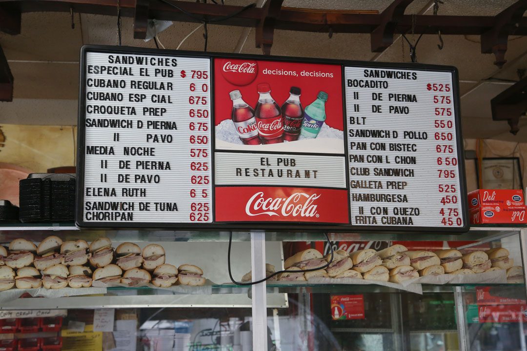 På El Pub i Little Havana i Miami serverer de en fabelaktig medianoche i historiske omgivelser. Jeg elsker slike caféer som dette. Utenfor restauranten finner du en «Ventanita». Kun en ekte kubansk restaurant har det. Her kan du bestille mat fra en luke i vinduet.