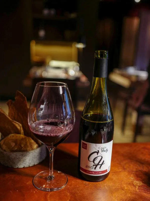 Vinen til jordskokken: 2015 Haty Croix Nicolas Dubost, Beaujolais. Helt uten svovel og fremstilt med Carbonic maceration. Masse kirsebær.