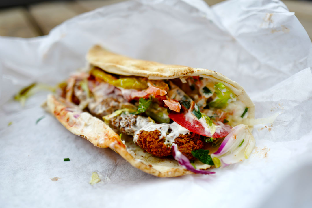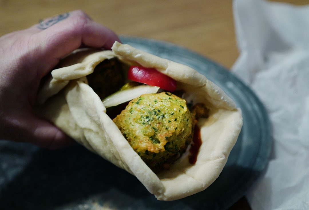I Malmö er falafel en slags nasjonalrett, hvis man kan si det. Det var de mange innvandrerne fra Libanon og Israel, som har kommet til byen de siste 40 årene, som tok med seg retten. Du vil finne kebab- og falafel-gatekjøkken på hvert gatehjørne i Malmö. Altså, de har også en fascinasjon for kebab-pizza der…