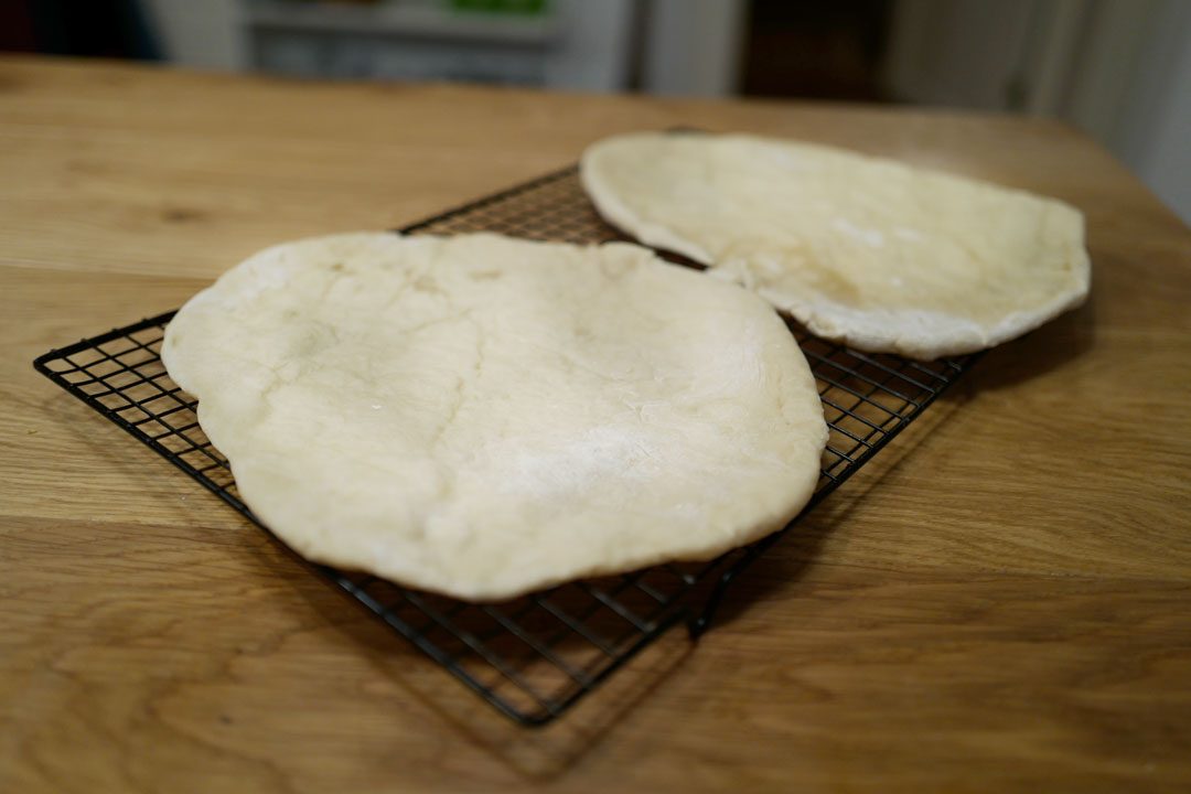 Rullebrød lager du av helt vanlig pizzadeig. Hev den som vanlig og kjevle den tynt ut. Stek én og én i ovnen til de er myke og gjennomstekte. Snu dem halvveis i stekeprosessen. Dette tar ikke mange minuttene når du steker dem på høy varme.