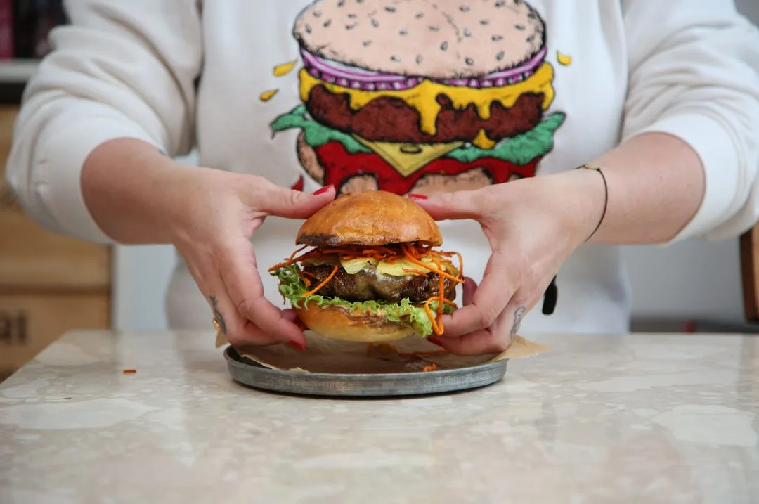 Burger: Jeg velger å gå for en storfeburger. Svin hadde passet godt til ananasen og til de andre elementene jeg har med i burgeren, men personlig elsker jeg en god storfeburger. Var vegetar et alternativ for meg? Nei, det var ikke det. Man har burger, og så har man burger. En hamburger – som er selvforklarende i navnet, inneholder kjøtt og da gjerne storfekjøtt.