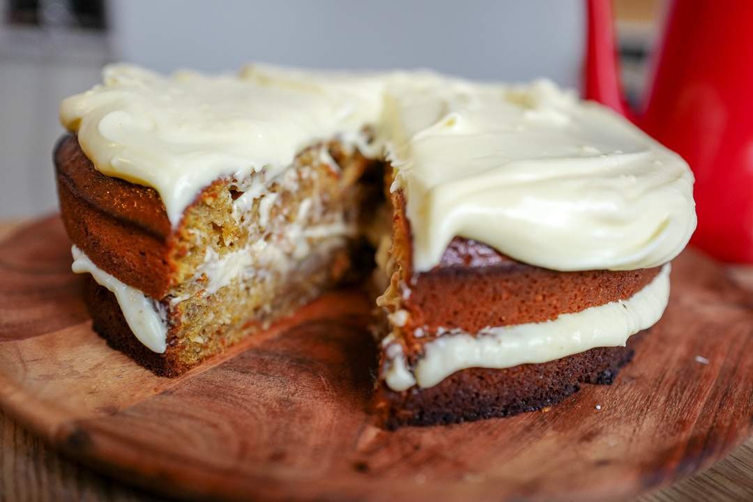Gulrotkaken er veldig saftig og en har klar smak av både kokos, ananas og rom. Til og med i kremen har jeg litt mørk rom. Du må ikke ha det, men jeg kan love at det smaker godt. Det er ikke mye som skal til. Romessens funker sikkert også, men jeg går for ekte saker.