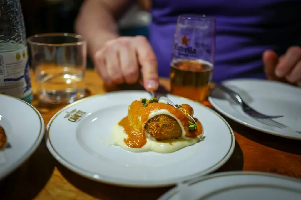 Krokettene med skinke er noen av de beste jeg har fått i Barcelona. Den lokale Bomba barceloneta smelter på tungen. Satan, så herlige. Les mer om Bar Cañete her.