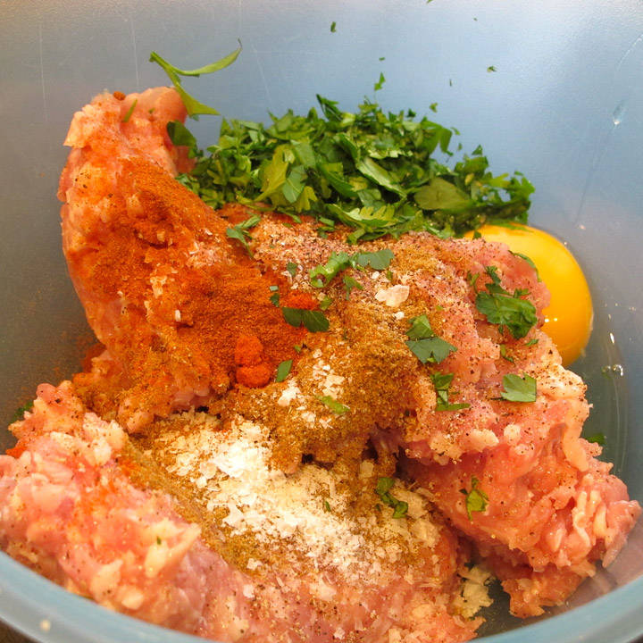 Kjøttdeig av kylling kan brukses til mangt: Pølser, burgere, kjøttboller, taco og i en pastarett. Jeg grillet burgere. Saft suse for en smak!