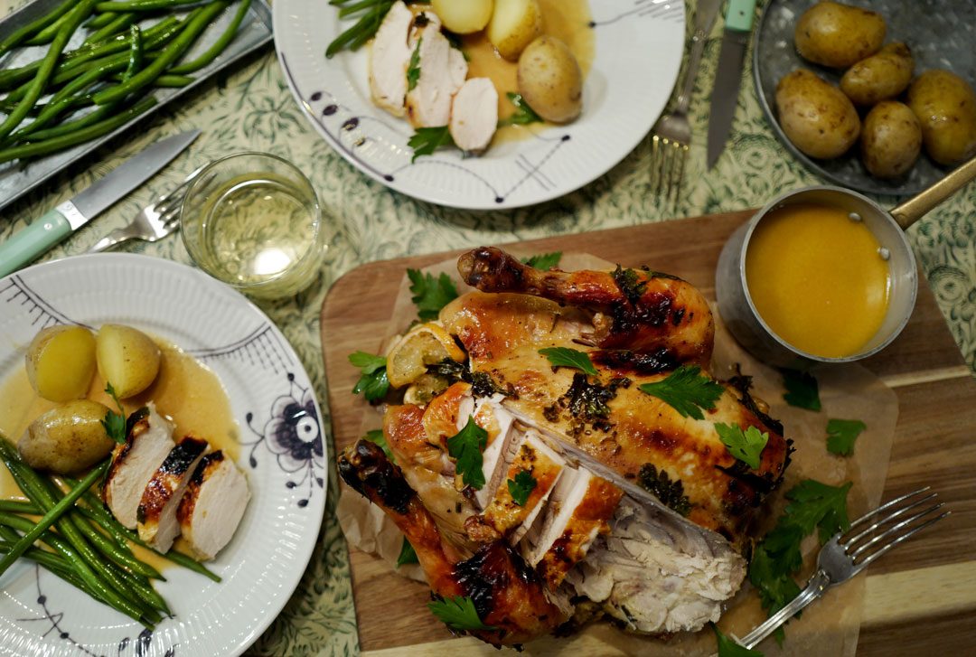 Min helstekte kylling er altså en moderne versjon av min kjære mormors oppskrift. Prinsippet er det samme: Kylling, saus og poteter. Potetene er viktige her. Man skal kunne gni dem i sausen, og sausen må det være nok av.