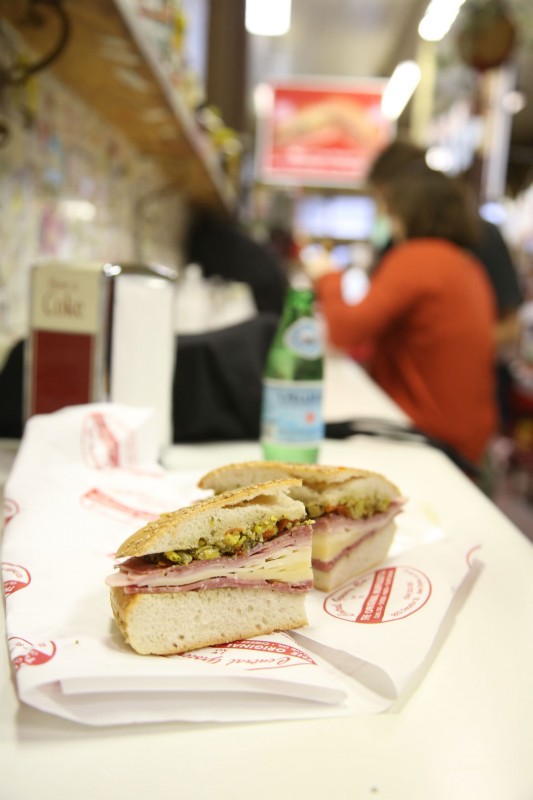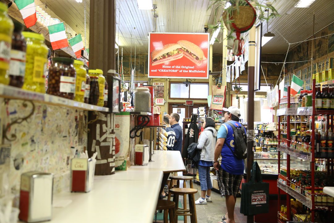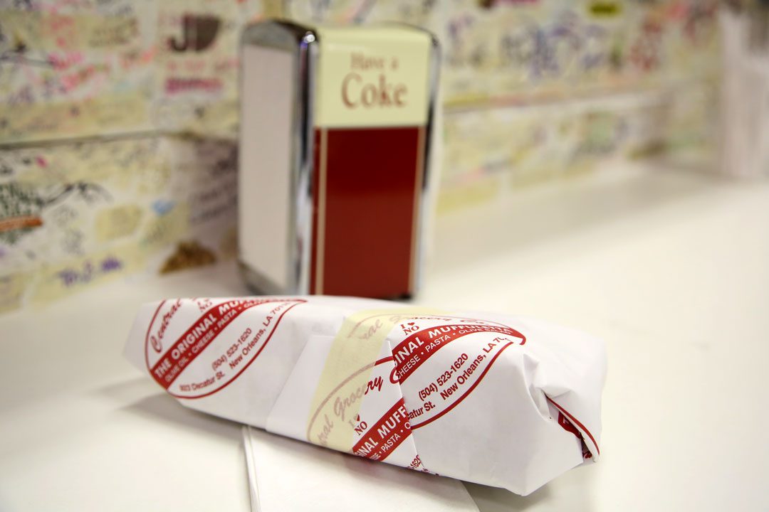 Muffuletta er en italiensk spesialitet som du finner på Central Grocery Co. Den lages med et rundt brød som deles i fire kakestykker før servering.