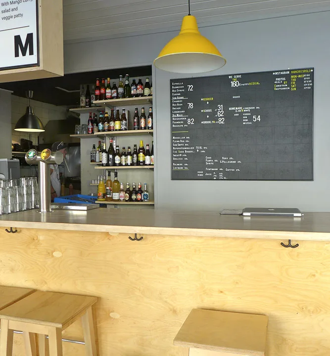 Stedet serverer ganske billige burgere i gråposer. Kjøttet er perfekt grillet. Konsistensen er den beste jeg har smakt noe sted i oslo. Lett rosa i midten og perfekt stekeskorpe. Saftig og velkrydret. Jeg valgte glutenfritt brød og det var passe tørt, men det «vanlige» valget som mannen min bestilte, var luftig og perfekt.