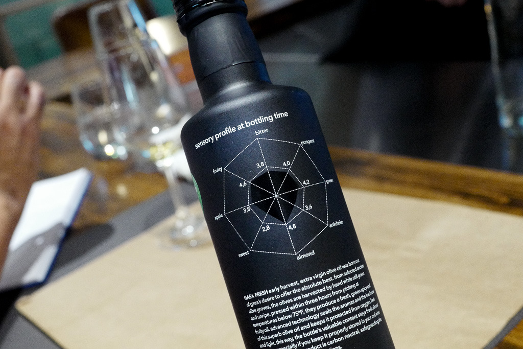 GAEA Fresh – olivenoljen som vi bruker som utgangspunkt i denne olivenoljeleksjonen, inneholder 60% Athinolia-oliven (oliven av høy kvalitet) og 40 % Koroneiki-oliven (Hellas’ mest populære oliven). Oljen kommer i en sort, ugjennomsiktig flaske. Hvorfor det?