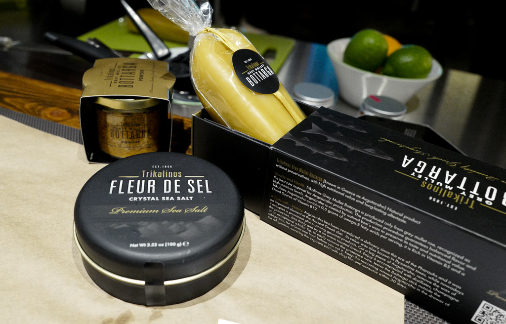 Chef Lila kommer inn på kjøkkenet og avløser Pantelis Iliakakis. Hun forklarer om bottarga – speket rognpose. Dette er en delikatesse som finnes i mange kvaliteter. Hun har med seg produkter fra Trikalinos.