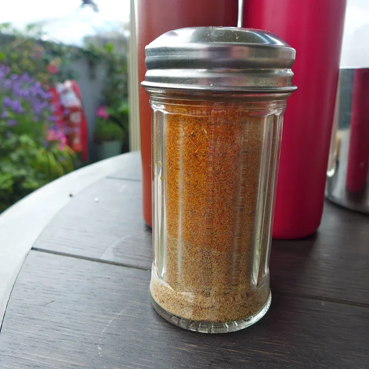 Så kom jeg til en annen restaurant i London, nykommeren Blues Kitchen. Samme greiene der. Grillkrydder på bordet. Og det samme skjedde i Barcelona på byens beste burgerbar, BACOA. «Piffi»-krydder er in!