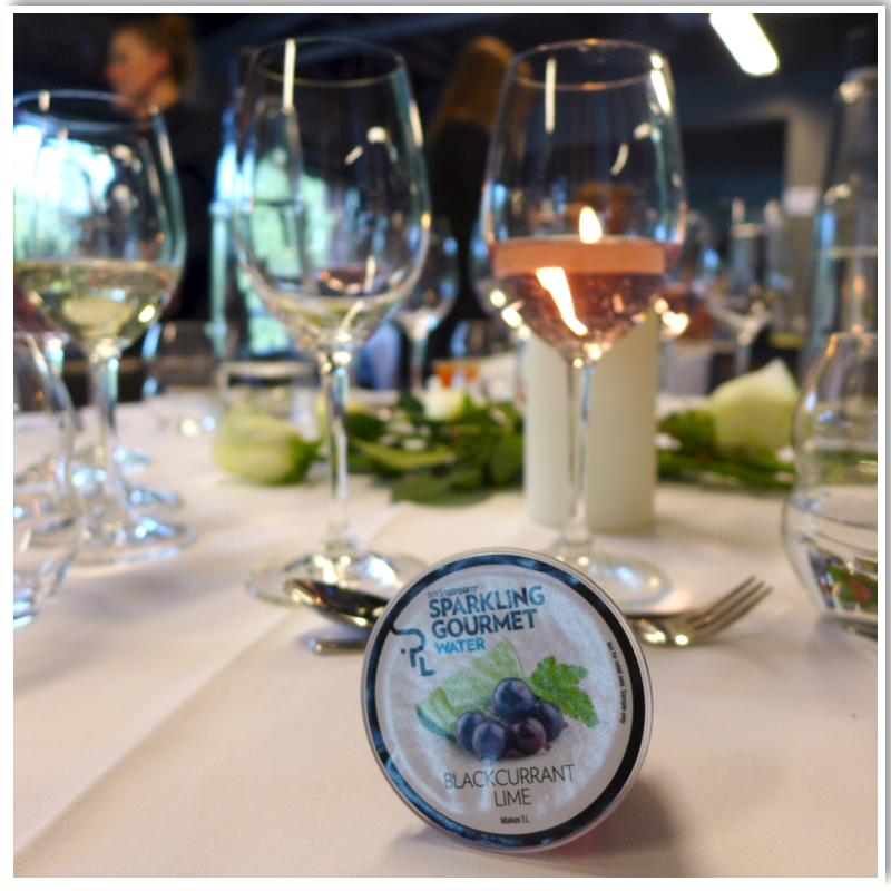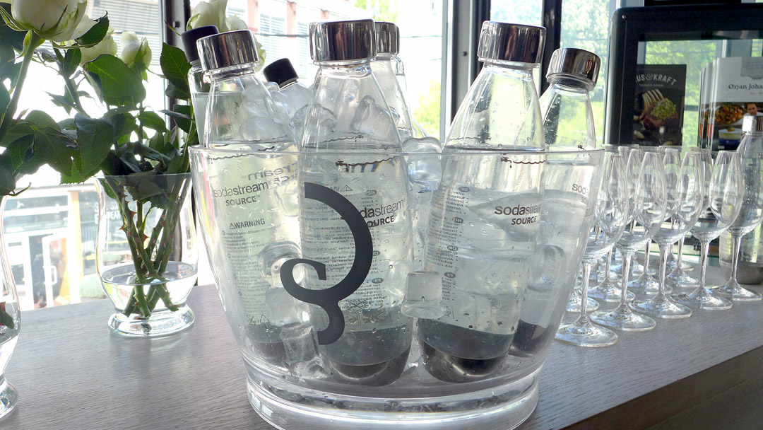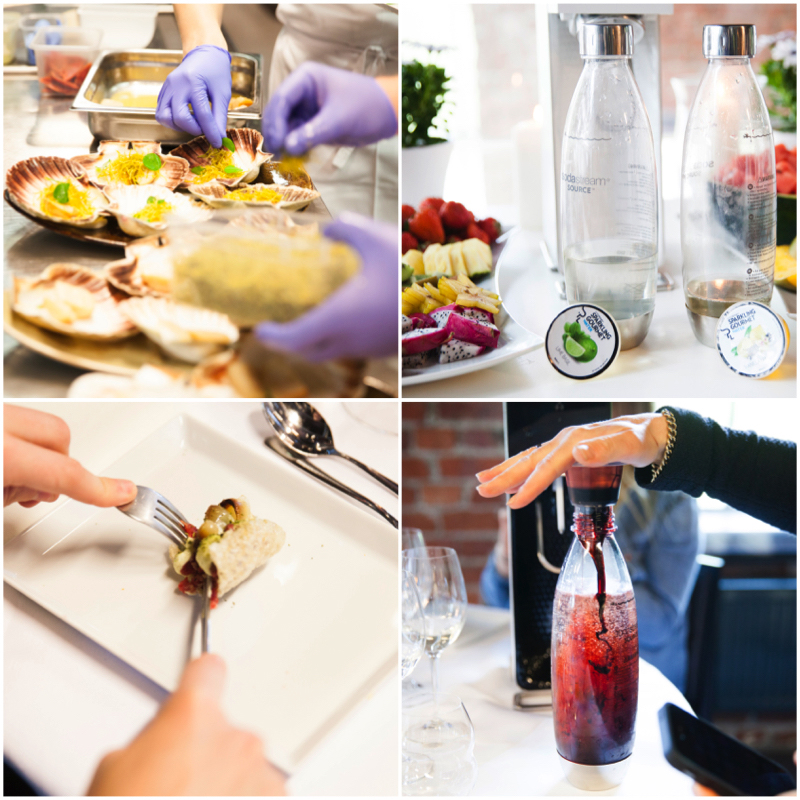 Vi får servert 6 retter med vannmeny fra SodaStream.