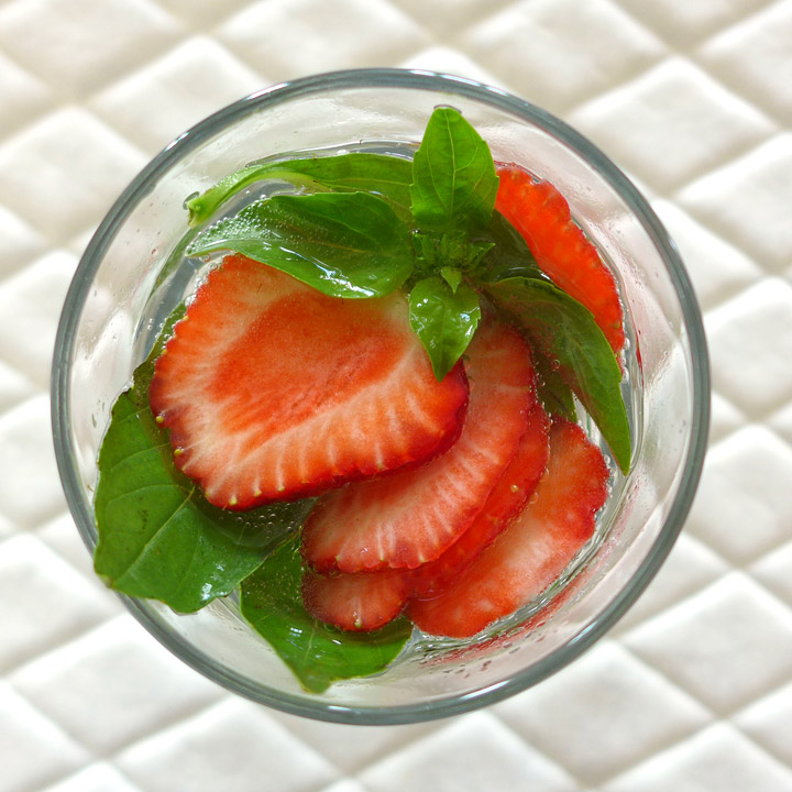 Jeg drikker som sagt mye vann, og jeg liker å smaksette vannet med forskjellige urter, frukter eller bær. Min favoritt om dagen er basilikum og jordbærskiver i kullsyrevann. Klassikeren sitronskive i vann funker hver gang. En fargerik variant som jeg bruker mye (og gjerne i en stor karafel) er tynne skiver av appelsin, lime og sitron sammen. Det er utrolig dekorativt og gir vannet en delig sitrussmak. Prøv også med eple og sitronmelisse eller plomme og rosmarin.