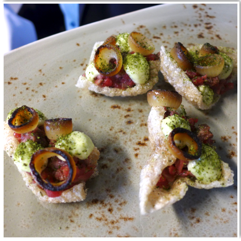 Jeg er med på et arrangement i Mathallen der Paul Liebrandt er tilstede. Anledningen er å parre «Sparkling Gourmet» med retter komponert av Kokkelandslaget. Personlig er jeg et vinmenneske. Jeg synes det er spennende med vinmenyer når jeg skal spise staselig mat. De gangene vinen virkelig matcher maten, skjer det noe magisk. Det samme har skjedd med ølmenyer. Øl til ost kan f.eks. være helt fantastisk. Så nå skal jeg altså gå tilbake i barndommen og smake smakssatt vann som er utviklet til å passe til mat. Kokkene fra Kulinarisk Akademi har laget en 6-retters meny som skal passe til 8 av smakene fra » Sparkling Gourmet». Dette blir spennende.