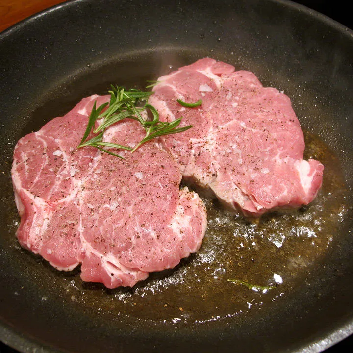 Nakkekoteletter av svin er noe av det mest smakfulle kjøttet jeg vet om. Billig er det også.