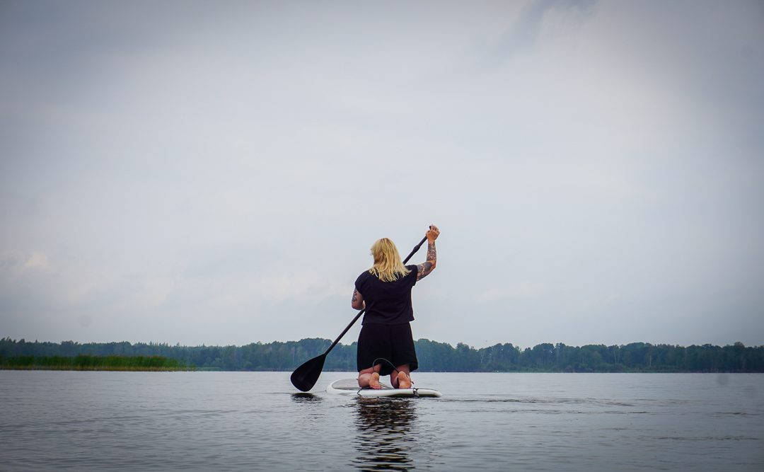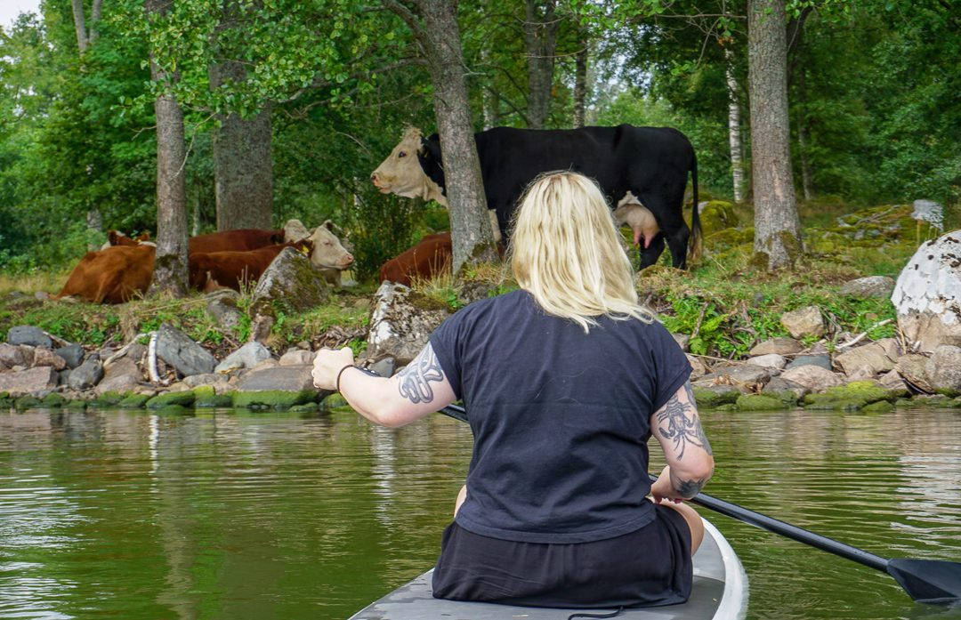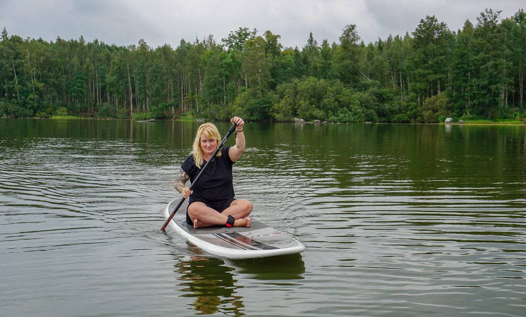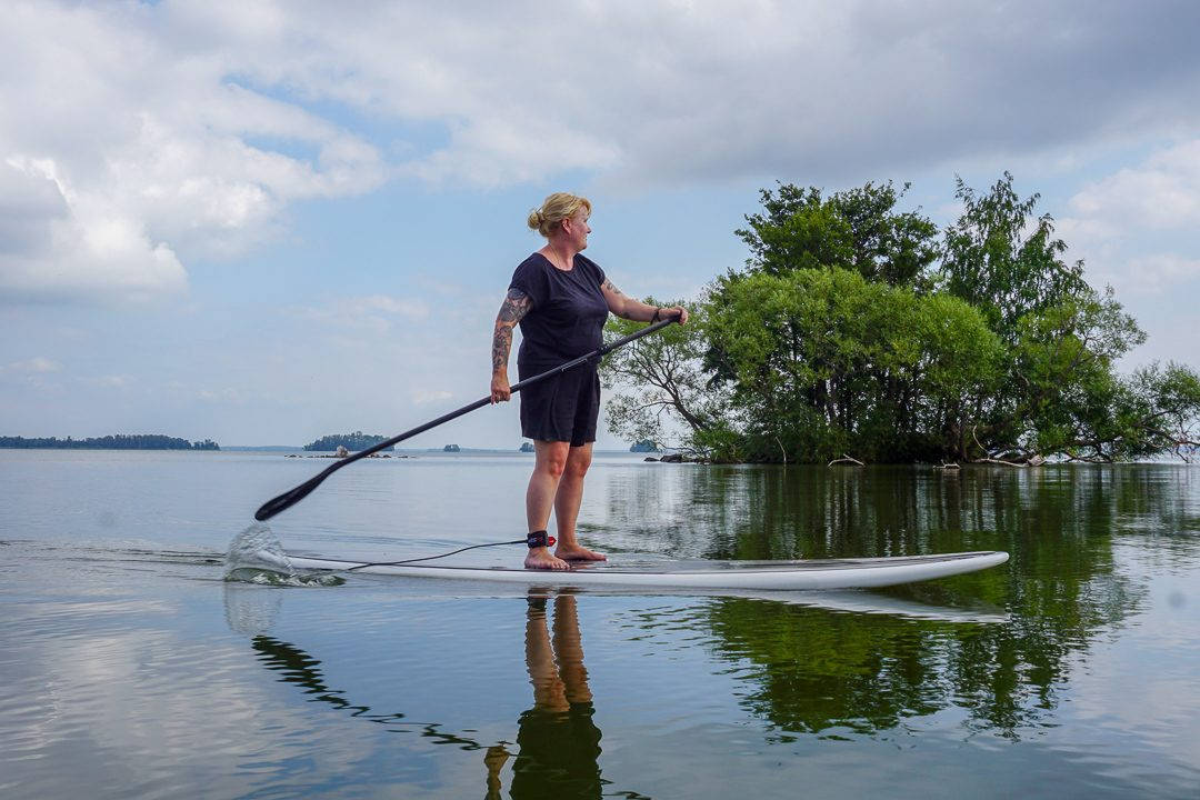 Etter kaffe og deilig mat møter jeg Jonne Frisk som driver Pop Up SUP. Han arrangerer blant annet SUP-safari (Stand Up Paddleboarding) på innsjøen Hjälmaren og det er akkurat det jeg skal være med på. Jeg har aldri prøvd dette før, ei stått på et surfebrett. Jeg har sånn halvveis hjertet med meg når det kommer til denne aktiviteten før vi starter. Tankene mine er også et helt annet sted. Komme taxien som skal ta meg inn til Örebro i tide? Når jeg bussen min tilbake til Oslo? Jeg bør vel kjøpe med meg mat til bussen? Hva skal det være? Hodet er fylt av bagateller og små bekymringer. Hvorfor skal jeg bruke 2,5 timer på et surfebrett på innsjøen?