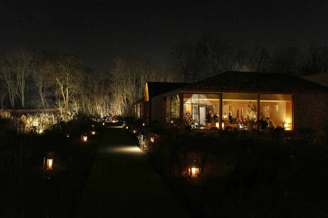 Nå er vi i København. Det er desember og det er mørkt. Stien inn til restauranten er diskret opplyst.
