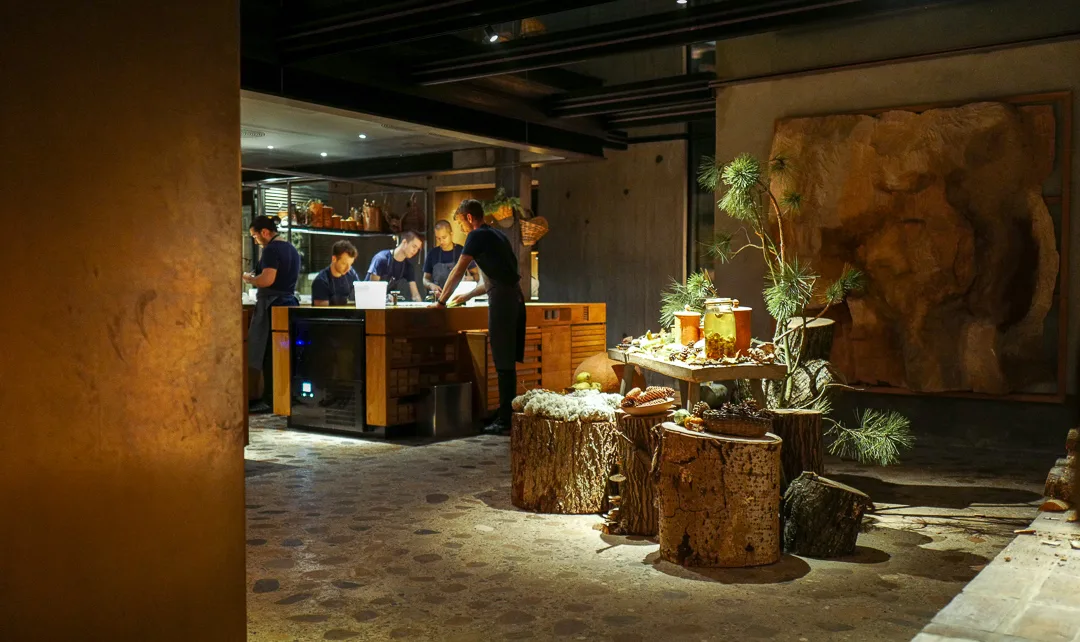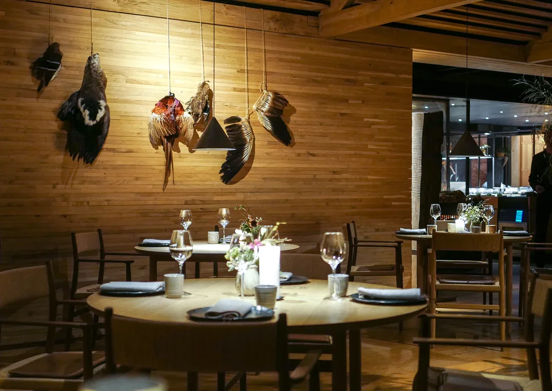 Interiøret på Noma er forandret fra forrige gang. Nå henger det fuglevinger på veggen. Det store bordet i entréen bugner av mose, kongler, vinterfrukter og furukvister. Dekketallerkene som pryder bordene er laget av banket jern. Denne sesongen handler om blod, jakt og hagl.