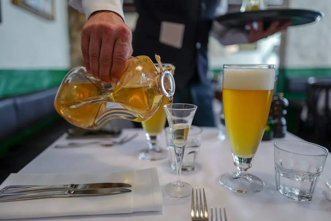 Beer and aquavit is a classic combination. Aquavit is a distilled potato spirit flavoured with dill seeds and caraway.