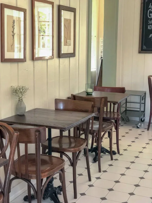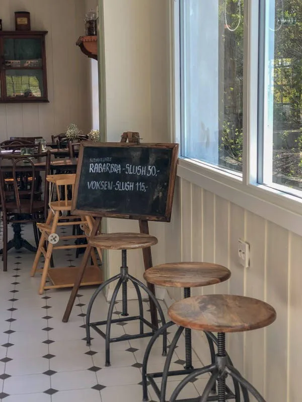 Caféen skal som nevnt ha helårsdrift og jeg gleder meg til å sitte ved et av de trivelige bordene inne når høsten kommer. Men først er det tid for sommer og da er det deres hjemmelaget rabarbraslush med og uten alkohol som jeg skal prøve.