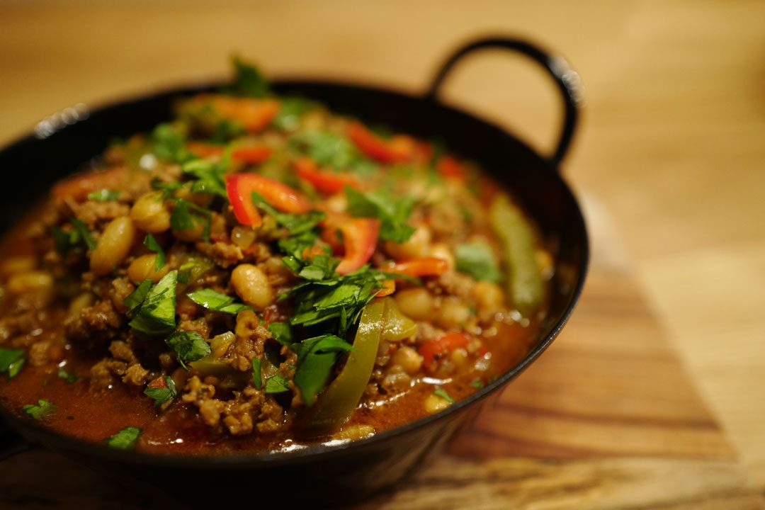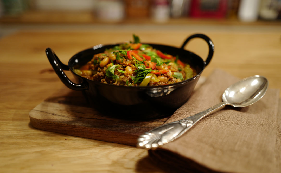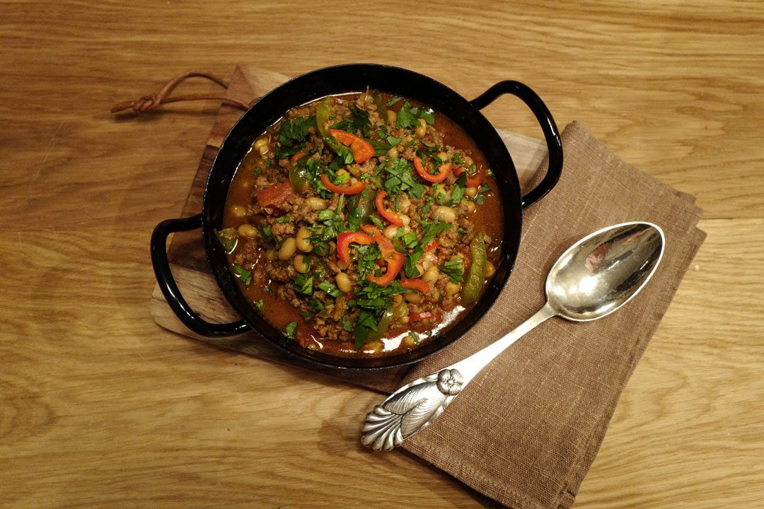 - Ta av lokket og tilsett bønner. La dette småputre en halvtimes tid. Pynt med persille eller koriander og mer chili. Server med ris, brød eller speilegg på toppen.