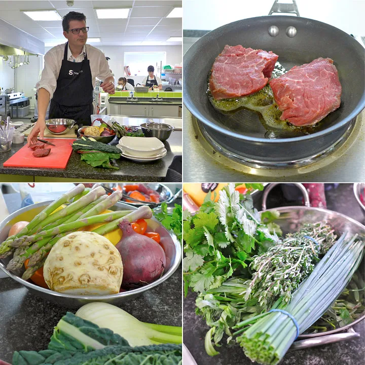 Oksefilet med chorizo, løkmarmelade, sellerisalat og asparges