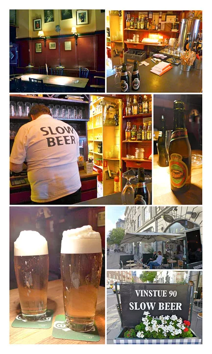 Vil du ha noe mer gammeldags, tar du turen opp noen gater mot Gammel Kongevej 90 til Vinstue 90. De driver med Slow Beer. Dvs. De tapper ølen på gamlemåten og det tar nøyaktig 15 minutter. Cluet er å bestille en venteflaske-øl mens du venter på fatølet. Ølet er fra Carlsberg, men tappes uten kullsyre med tjekkisk tappeutstyr, kun skum. Og skummet må få tid til å legge seg før det igjen blir tappet om og om igjen til glasset er fylt med øl.