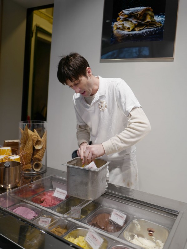 Isen er håndlaget og Pierre lager 4-6 nye smaker hver måned foruten det faste utvalget.