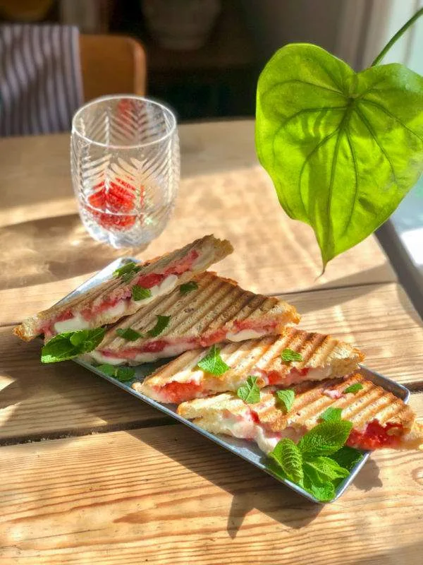 Må ostesmørbrød være saltmat? Nei, det må de ikke. Jeg lagde en deilig lunsj forleden dag der jeg brukte mozzarellaost og skiver av jordbær. Ved servering ringler du litt flytende honning og drysser over mynteblader. Jeg sier deg: Du vil elske det!