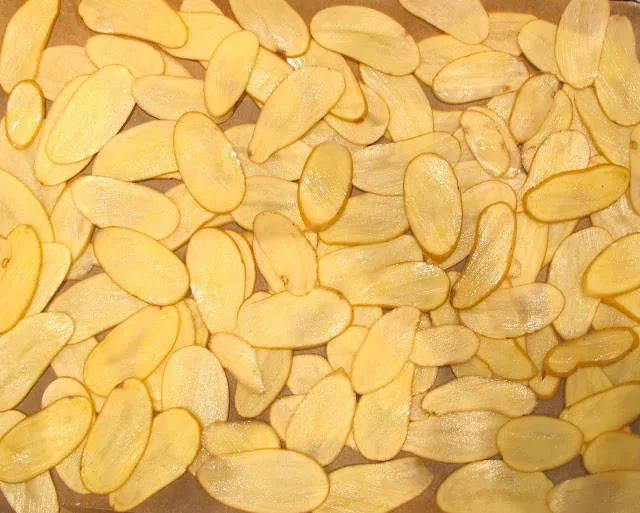 Jeg bruker en mandolin for å få tynne skiver, men du kan bruke en osthøvl eller siden på et rivhjern. Pass fingrene…