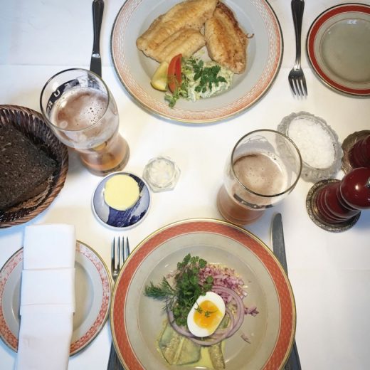 Vi nådde en superkjapp lunsj på klassikeren Tivolihallen. Smørstekt rødspette til Erik og jeg fikk karrisild med smilende egg. Alltid en sildemad når jeg er i Danmark. Det må jeg få med meg.
