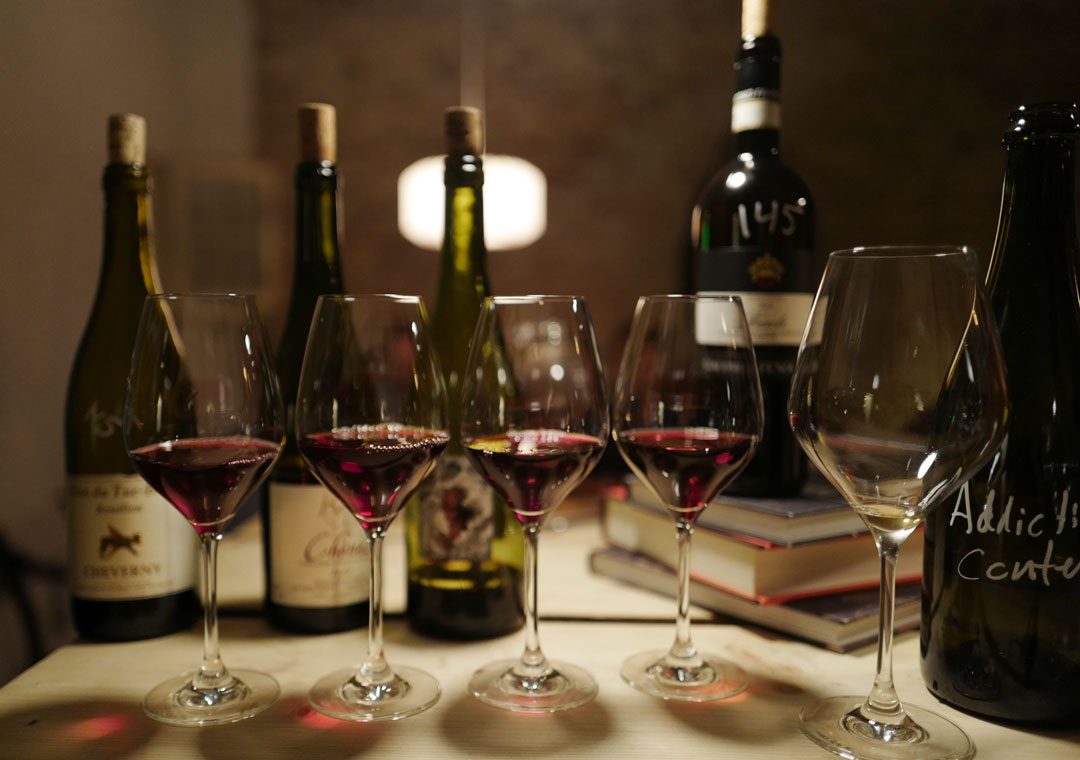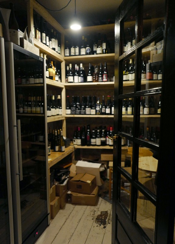 I den lille gangen utenfor kjøkkenet finner du toalett og vinrom. Døren til vinrommet står åpen og man kan vandre inn og kikke som man vil, plukke ut akkurat den du vil ha å drikke mens du er der eller ta med deg hjem. Det er et paradis for vinelskere og liker du naturviner trenger du egentlig ikke å gå videre. Du er fremme.