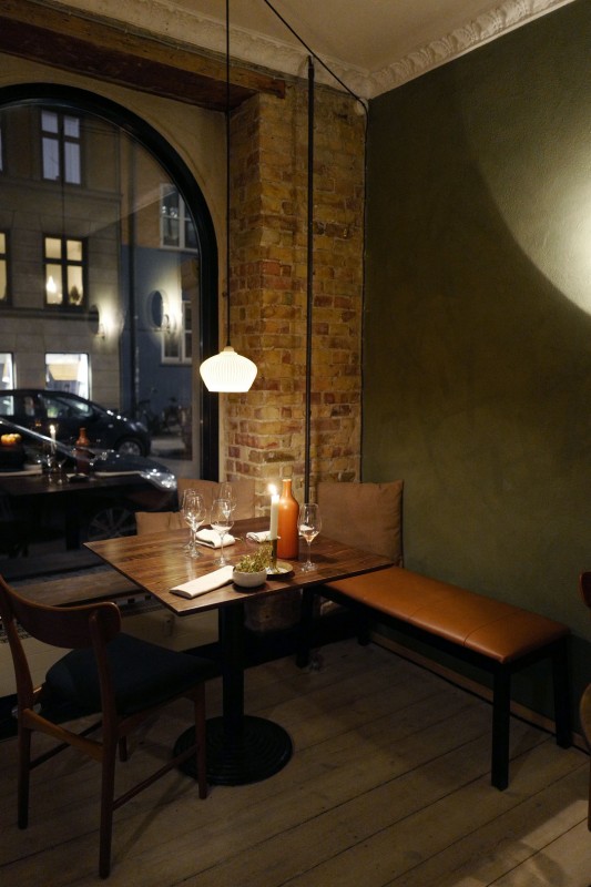 Den bittelille restauranten/vinbaren ligger i en rolig boliggate på Vesterbro. Det er noen få bord i lokalet og det lukter ekte hjemmelaget mat. Det er som å komme inn på min mormors kjøkken i Ølstykke. Dette lover godt.