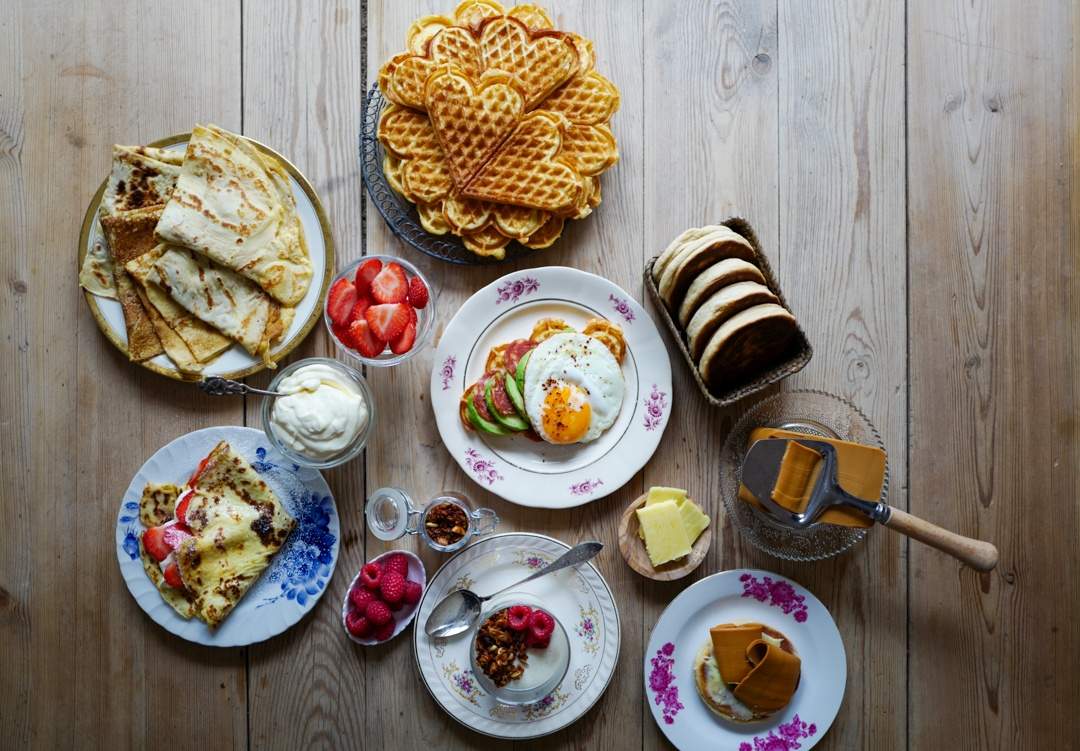 Men det er også andre produkter jeg er veldig glad i. Et eksempel er tjukkmjølk. Dette snedige melkeproduktet er syrnet økologisk melk som tilsettes en tradisjonell tettekultur, en flere hundre år gammel kultur med aktive melkesyrebakterier. Denne melken passer perfekt i bakervarer og i dette innlegget vil du se at jeg har brukt tjukkmjølka i vafler, franske crêpes, pjalt og tjukkmjølkspudding med bær og hjemmelaget granola. Alt dette passer perfekt på et frokost- eller brunsjbord eller som enkeltretter.
