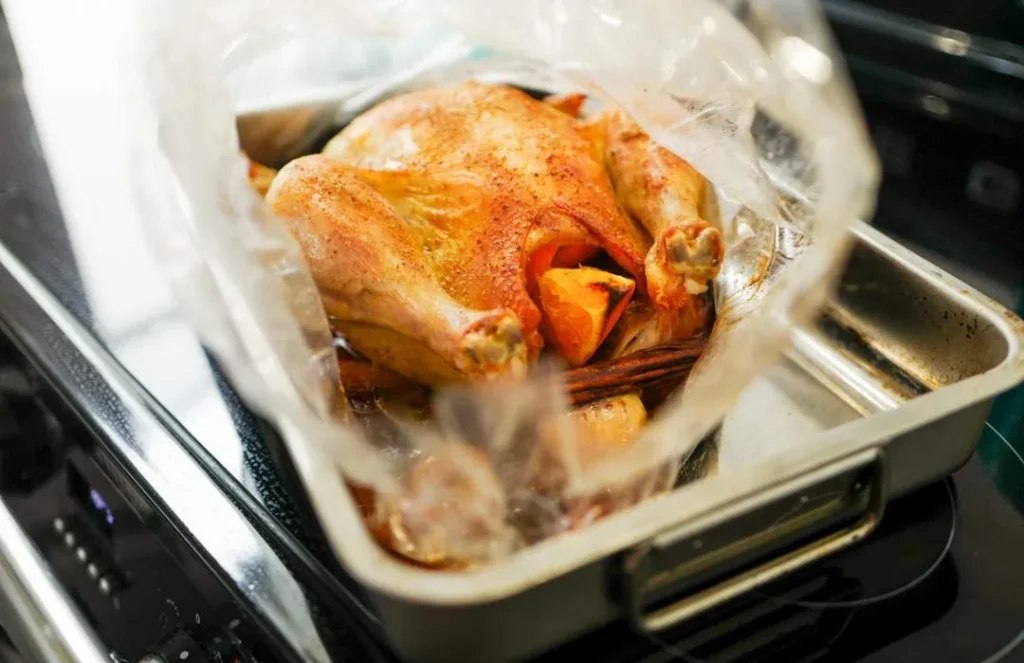 Kyllingen steker jeg i god, gammeldags stekepose. Jeg har begynt å bruke stekepose til både ribbe og kylling da jeg synes råvarene blir supersaftig med denne metoden. Stekepose er veldig retro og det er ikke sikkert du har prøvd det før? Du kan kjøpe pakker med poser i helt vanlig butikk.